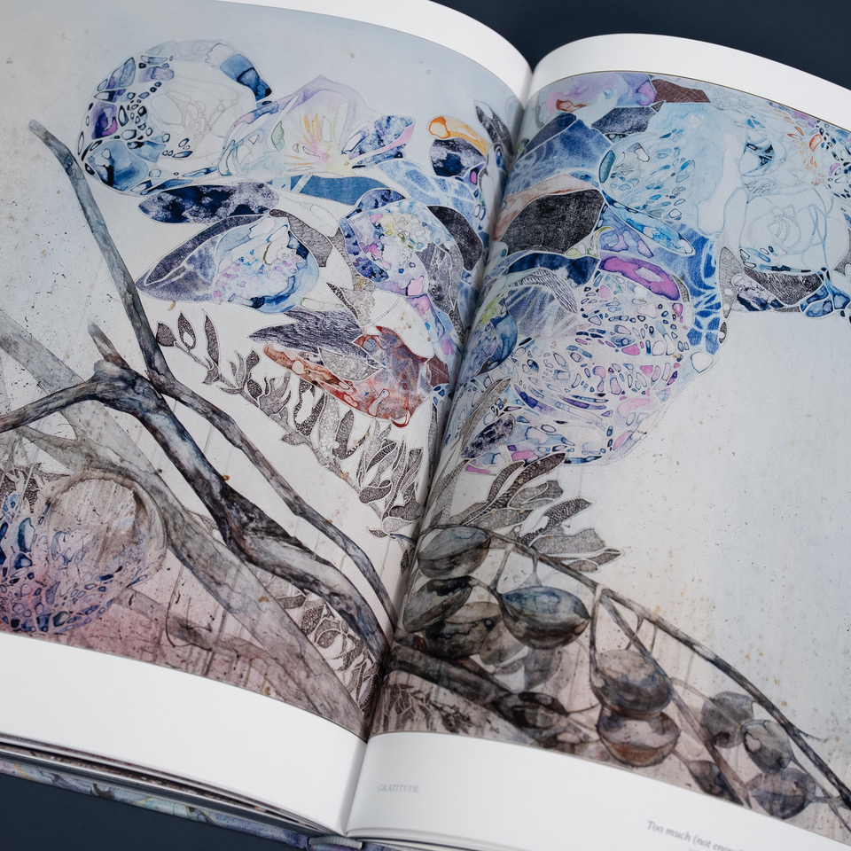 Together, the two books mark significant phases of her artistic journey. Alongside Fox’s own reflections, Cultivate features contributions from leading voices who know her work closely. Sophie Travers (Co-Director/CEO, Australian Tapestry Workshop) traces her restless expansions across continents and media; critic John McDonald situates her imagery within broader cultural and ecological dialogues; Danny Lacy (Director, Shepparton Art Museum) provides the foreword, framing this decade as one of resilience and transformation; and Katherine Roberts (Senior Curator, Manly Art Gallery & Museum) engages the artist in a candid conversation about process, place, and purpose. Beautifully designed and deeply considered, Cultivate is both a record and an invitation: to pause, to look, and to enter the layered spaces where material, story, and humanity converge.